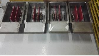 SCATOLE DI DERIVAZIONE AT Realizzata in acciaio e corredata della componentistica elettrica prevista ( isolatori, trecce di massa) |